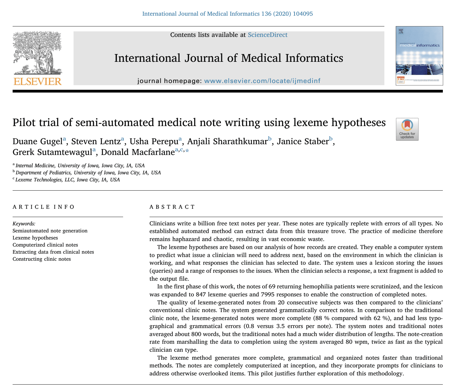 We completed our first clinical trial Pilot study of Lexeme-based note creation.
